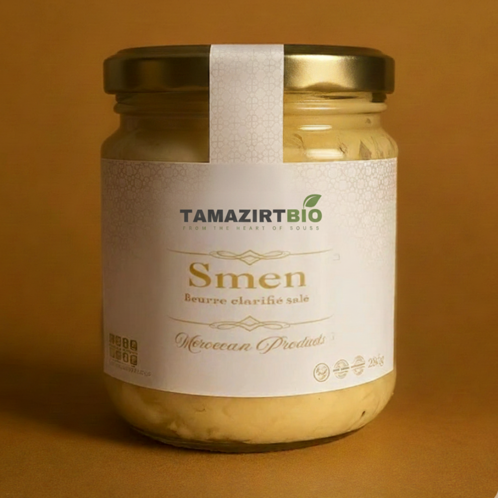 السمن زبدة مُخمّرة تُستخدم في العديد من وصفات المطبخ المغربي أو المغاربي الشهيرة، مثل الكسكس والحريرة وبعض الطواجن. تُستخدم بكميات قليلة، لا تتجاوز عادةً ملعقة صغيرة، مما يُضفي نكهة مميزة على الطبق. عبوة ٢٥٠ غرام.